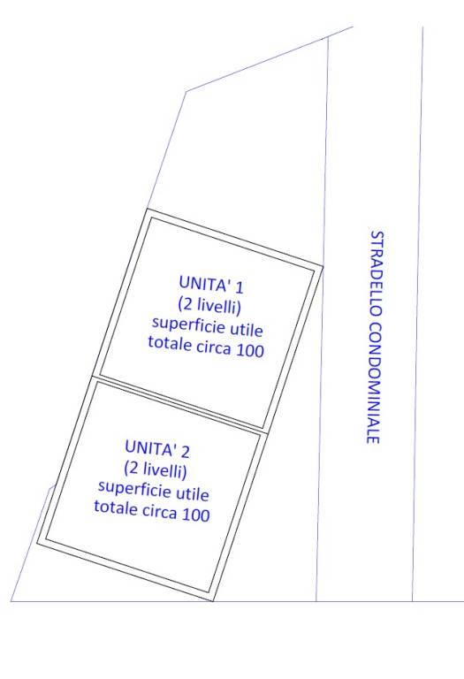 • Esempio di possibile realizzazione: due unità immobiliari da 100 mq ciascuna, con ampi spazi abitabili e funzionali.