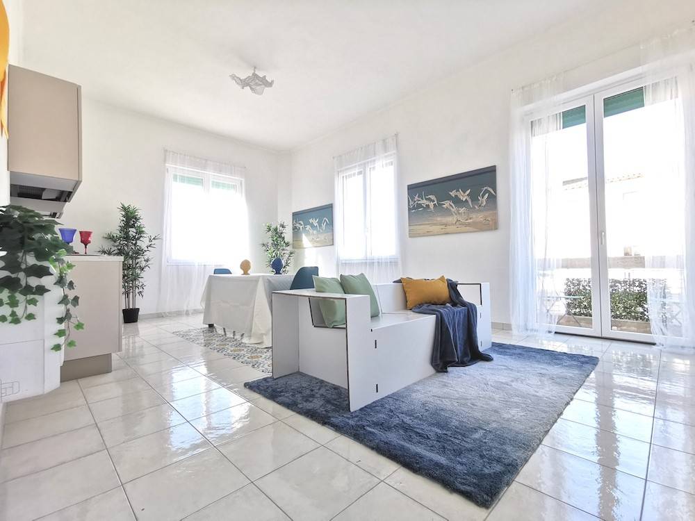 Vendesi a San Vincenzo in splendida posizione centrale appartamento di ampia metratura con 3 camere matrimoniali e 3 bagni. L'appartamento occupa tutto il piano primo di un palazzo storico di grande fascino costruito negli anni 30'. L'appartamento è stato oggetto di completa ristrutturazione con particolare attenzione alle soluzioni per il risparmio energetico. Il fabbricato occupa un ampio lotto che si estende dalla centralissima piazza antistante la chiesa fino al retrostante parcheggio ed ha un doppio accesso. L'accesso principale avviene dall'originale portone di piazza Umberto, si passa attraverso un grande androne che porta alle cantine al piano seminterrato e al mezzanino. Il secondo accesso direttamente dai posti auto privati e dal giardino avviene al piano ammezzato che conduce con pochi gradini all'appartamento. L'appartamento è composto da un grande salone con cucina a vista e piccolo balcone, 3 grandi camere matrimoniali e 3 bagni di cui due con accesso direttamente dalle camere e uno con antibagno dotato di angolo lavanderia. I vani sono ampi, luminosi con generosi volumi. L'appartamento è fornito di un gradevole loggiato dove poter mangiare o rilassarsi e gode di vista mare dalla camera lato ovest. Vista l'ampia metratura può essere utilizzato come abitazione principale, seconda casa e anche da due nuclei familiari, oppure posto a reddito anche con locazione delle singole camere con bagno interno. La ristrutturazione effettutata nel 2024 ha rinnovato completamente l'immobile portandolo alla massima efficienza energetica compatibile con gli ultimi standard costruttivi. La dotazione comprende infissi a bassa emissione in pvc, acqua calda sanitaria a pompe di calore, impianto solare termico, riscaldamento e condizionamento a pompe di calore, pannelli fotovoltaici a supporto dei consumi elettrici, impianto di addolcimento acqua, cappotto termico sul lato est del fabbricato con materiale traspirante, coibentazione del sottotetto. Inoltre la casa è cablata con rete internet LAN e impianto tv satellitare. A completamento del comparto energetico vi è una colonnina di ricarica per auto elettriche ubicata in corrispondenza del posto auto privato, caratteristica estremnamente particolare per il mercato immobiliare sanvincenzino. L'accesso carrabile avviene attraverso cancello motorizzato e conduce ai due posti auto privati. Vista la posizione centrale i due posti auto sono un vero valore aggiunto della proprietà. La corte dove si trovano i posti auto comprende un ampio giardino comune ad una sola altra unità immobiliare. Non vi sono spese condominiali ad eccezione di quelle riguardanti la manutenzione delle fosse biologiche e del giardino comune. Tutti gli impianti (elettrico ed idraulico) sono stati rifatti questanno e sono forniti di certificazione come per legge. Stesso vale per la pavimentazione con decori e luminose tonalità marine e gli infissi interni. Viene venduto parzialmente arredato. Contattare l'agenzia per il prezzo e per fissare una visita sul posto.