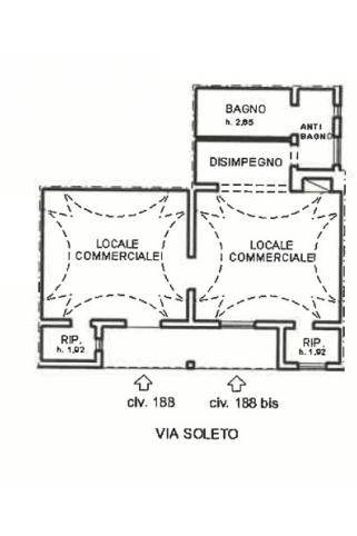 Locale commerciale di circa 50 mq su fronte strada con 1 vetrina e porta a vetri. Doppio ingresso, molto luminoso.