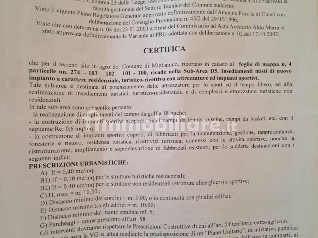 Allego CERTIFICATO DI DESTINAZIOND URBANISTICA dov'è possibile visionare le caratteristiche del terreno.