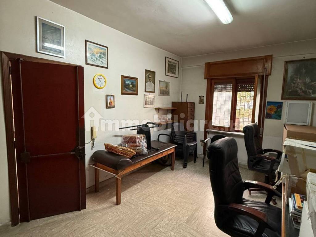 Lo studio è così composto: ingresso con spazio esterno, una grande sala d'attesa con bagno dove si accede ad un'altra stanza con scrivanie e bagno personale con sgabuzzino.