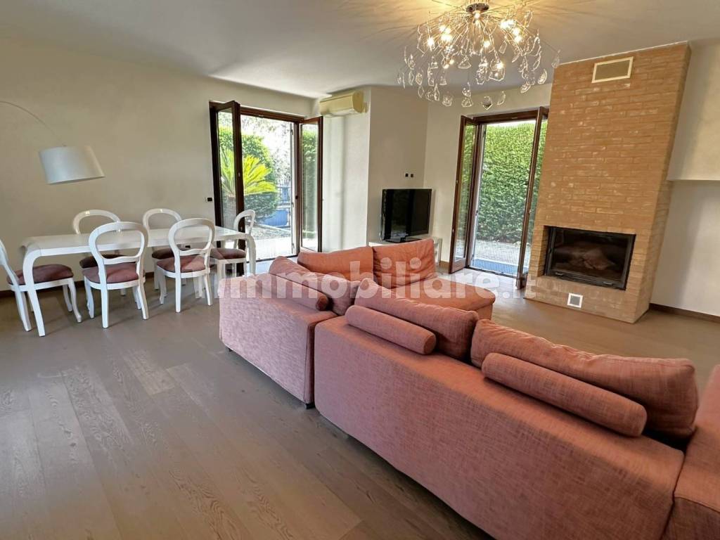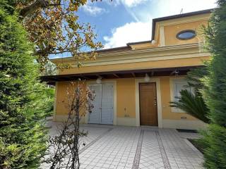 Esclusiva villa singola situata a pochi passi dal lungomare Rinascimento una vera e propria oasi di tranquillità a pochi passi dal mare. La sua posizione privilegiata, unita alla sua architettura moderna e raffinata, la rende una soluzione ideale per chi desidera vivere in un ambiente elegante e confortevole, inoltre dotata di pannelli solari e di cappotto termoacustico per garantire un elevato risparmio energetico.. La proprietà, per un totale di di 230 mq coperti, e' in perfette condizioni, con rifiniture di pregio ed è suddivisa nel seguente modo: al piano terra di circa 120 mq , troviamo un ampio e luminoso soggiorno, una cucina abitabile completamente arredata, due confortevoli camere da letto e 2 bagni tutti dotati di finiture di alta qualità , con una comoda scala interna si accede al piano superiore di circa 40 mq con 2 vani e bagno oltre a 2 bellissime terrazze coperte di circa 90 mq. Dispone inoltre di ampio locale taverna di 70 mq con camino e bagno ed un comodo garage doppio di 42 mq ideale per 2 auto. L'esterno della villa è altrettanto suggestivo, con una corte di circa 340 mq e un giardino perimetrale curato nei minimi dettagli, perfetto per godersi il clima mite della zona, l'intera proprietà è completamente recintata e dispone di un altro ingresso carrabile con cancello che consente di parcheggiare anche auto ed altri mezzi.