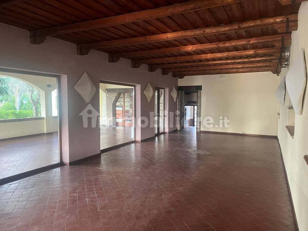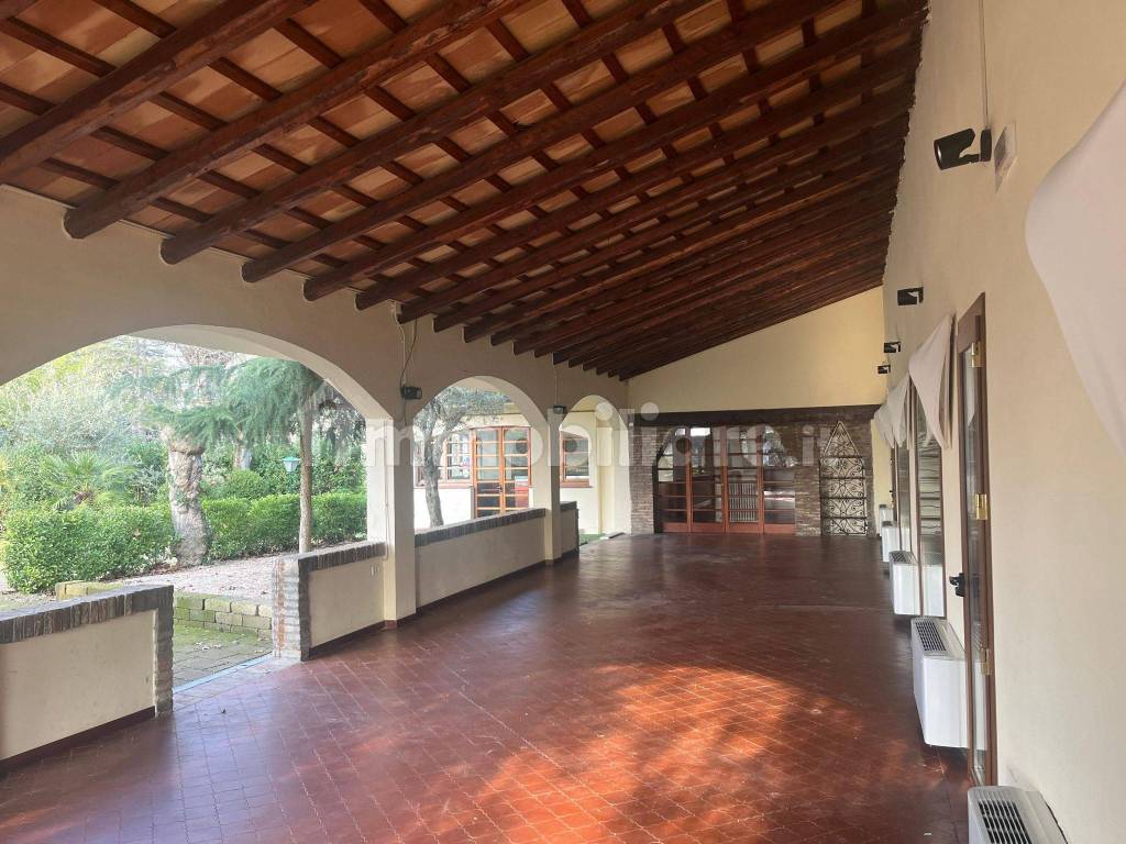 L'immobile offre ampi spazi esterni con giardino di 2500 mq, ideale per eventi all'aperto, espansione della zona ristorazione o altre attività.
