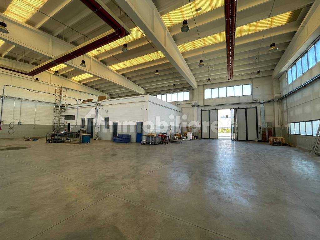 - Mq. 738 di area operativa con un’altezza sfruttabile sotto trave di Mt. 8,0 accessibile tramite due carrai Mt. 5,0 x Mt. 4,50 completo di impianto elettrico con portata massima Kw. 200, impianto di illuminazione, prese 220/380, impianto di antincendio interno, predisposizione per impianto antintrusione, canaline ed impianto di aria compressa.