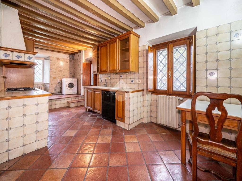 Adiacente vi è la cucina abitabile con cucina in muratura, un bagno molto ampio con doccia e vasca, probabilmente ristrutturato vs i primi anni 2000, ripostiglio cieco, capiente e infine una camera matrimoniale o studio con il soffitto a volta che affaccia sul lato del parco.