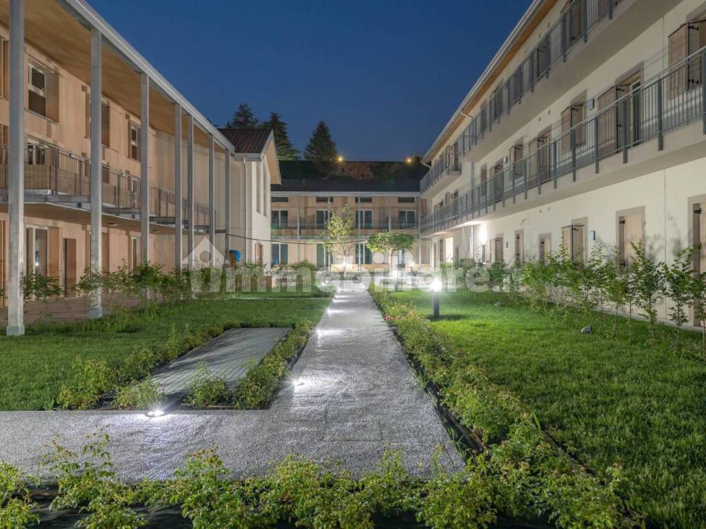 In signorile ed elegante contesto di nuova costruzione, comodo con il centro ed i servizi di primaria necessità, proponiamo villetta a schiera di testa con porticato e giardino di proprietà, disposta su due livelli abitativi oltre sottotetto. Sviluppa una superficie di mq.148 ed è costituita da un portico d'ingresso di mq.12, zona giorno con angolo cottura, antibagno, bagno e giardino di mq.60 al piano terra; due camere, disimpegno, bagno e terrazzo coperto di mq 11 al piano primo; ampia zona openspace con copertura in legno a vista nel locale sottotetto. Il tutto è completato da box doppio in larghezza con basculante sezionale motorizzata e cantina al piano interrato. Sono inoltre disponibili ulteriori box e posti auto coperto.