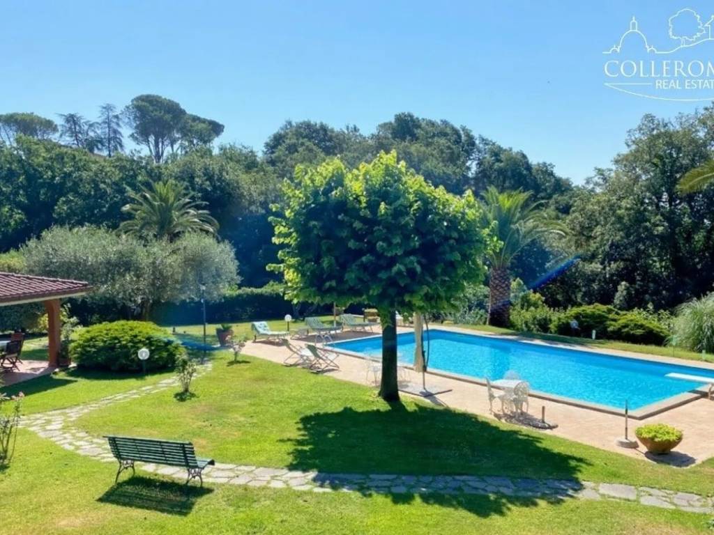 Bellissima villa in vendita nel Comprensorio di Colleromano, una zona residenziale alle porte di Roma. Questa proprietà unica è composta da un corpo principale di 260 mq e un appartamento indipendente di 110 mq, per un totale di 370 mq di superficie totale. La villa si sviluppa su due piani ed è circondata da un bellissimo giardino di 3500 mq.