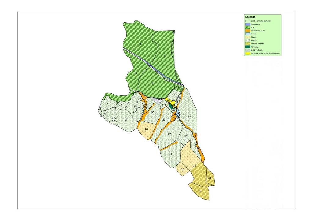 La Tenuta, ubicata sulle alture di Torraccia di Chiusi, suddivisa in una prima proprietà di circa 50 ettari, in una seconda, di circa 96 ettari e in una terza di circa 35 ettari, può essere ampliata di una quarta acquisizione attigua, di circa 35 ettari, già vitata. Inoltre è possibile moltiplicare le suite dell'attuale attività ricettiva con altri alloggi. Gli altri immobili, finemente ristrutturati, per una superficie di circa 1600 mq, sono suddivisi in tre unità cosi composte: