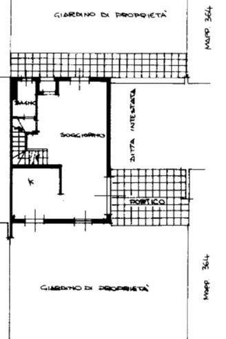 Piano terra: comprende una luminosa zona living, con cucina abitabile, bagno finestrato e uno splendido portico che collega casa al giardino.