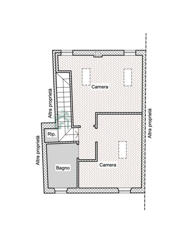 Al piano secondo e ultimo sono presenti le due camere da letto, delle quali una tripla e una matrimoniale e il bagno a servizio della zona notte.