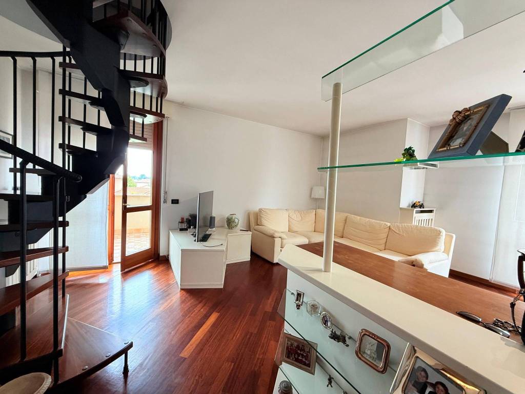 Proponiamo in vendita appartamento su due livelli, quattro locali complessivi, composto da tre stanze, di cui una situata al piano sottotetto, e un bagno. È possibile realizzare un secondo bagno al piano sottotetto grazie alla predisposizione già presente.