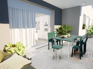 I mq calpestabili sono ben distribuiti senza spreco di spazio: soggiorno angolo cottura 46 mq con alzante scorrevole che illumina tutta la stanza, antibagno con spazio per ripostiglio/lavanderia e primo bagno a servizio della zona giorno; il reparto notte comprende due camere di oltre 13mq e matrimoniale di ca 17mq oltre al bagno finestrato dedicato.