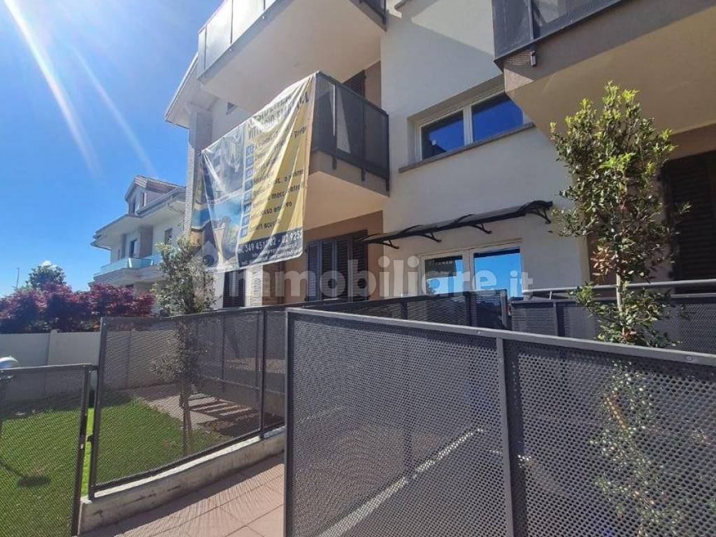 Trilocale a piano Terra rialzato con giardino di 85 m2 che si estende su 3 fronti (fronte principale Sud e Nord), appartamento luminoso con ampio living-soggiorno con zona giorno e zona cucina a vista (36 m2 netti), esposizione terrazzo e giardino sud con finestrone scorrevole, dal terrazzo si accede al giardino privato (oltre che da n°2 cancelletti dedicati lato ingresso e lato area cortile box, due camere, due comodi bagni, tripla esposizione, Sud-Ovest-Nord,