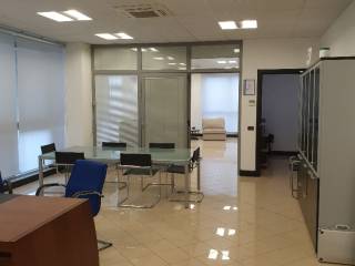 All'interno della zona commerciale in prossimità del casello autostradale al piano 1° ed ultimo di un edificio di recente costruzione ufficio di ampia metratura disposto su di un unico livello composto da ingresso e sala d'attesa, n. 2 bagni finestrati, n. 2 sale con archivio interno e n. 2 studi il tutto suddiviso da pareti amovibili e tramezze. L'ufficio ha impianti a norma autonomi con raffreddamento e raffrescamento a soffitto con pompa di calore, impianto d'allarme e video sorveglianza, rete interna cablata, centralino telefonico.