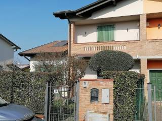 Splendida villa a schiera di testa ad uso abitativo con 4 locali e 2 bagni, situata nel suggestivo comune di Torlino Vimercati (CR). Costruita nel 2005, questa proprietà vanta una superficie di 160 mq, arricchita da una stufa/camino per le serate accoglienti. Il giardino privato di 250 mq offre uno spazio verde perfetto per momenti di relax all'aria aperta. Con due box auto, l'impiego di riscaldamento con pannelli fotovoltaici, l'impianto di climatizzazione autonomo, l'impianto di allarme, il videocitofono, l'impianto di irrigazione e il videocitofono il comfort è assicurato in ogni stagione. I serramenti in noce nazionale con doppi vetri garantiscono un'ottima insonorizzazione e isolamento termico. L'interno, in condizioni impeccabili, presenta una cucina abitabile e un luminoso soggiorno con porta vetrata. Il portico sul fronte e la veranda sul retro, per un totale di 32 mq, offrono ulteriori spazi vivibili e la possibilità di godere appieno della tranquillità del luogo. Un'opportunità unica per chi cerca una casa accogliente e ben tenuta in una zona residenziale di pregio.