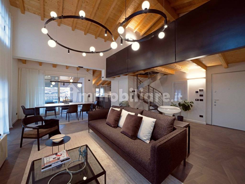 All'interno del prestigioso palazzo Castello19, in centro storico, strepitoso attico quadrilocale con finiture di lusso, completamente arredato come da progetto di MARTINA RE in collaborazione con Molteni.