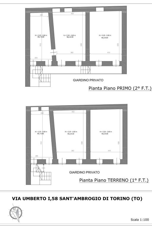 Ogni piano ha una superficie di circa 70 mq.