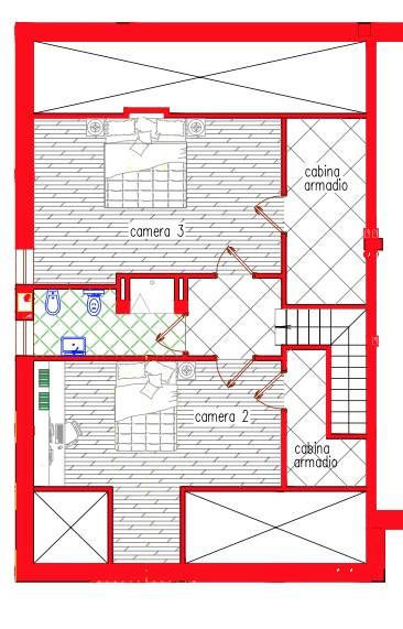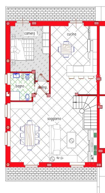 Al piano terra attualmente è suddivisa in due box auto: uno molto capiente che può essere considerato doppio e l'altro, con ingresso separato, è singolo e può essere sfruttato come cantina o locale deposito per chi ne ha la necessità Inoltre vi è anche una zona adibita a vano tecnico. Salento per le scale troviamo tutta la parte abitativa, che attualmente è un open space. Dal progetto iniziale si possono ottenere un'ampia zona giorno e una o due camere da letto con bagno. La bellezza della casa è che abbiamo due balconi sui lati opposti e tre finestre laterali, questo permette una facile distribuzione degli spazi. Tramite una scala ancora da fare, si accede al piano sottotetto, grande quanto la parte sotto, che può essere sfruttato come locale di sgombero o, con la normativa attuale, si potrebbe chiedere il suo recupero ai fini abitativi, da verificare a seconda delle esigenze singole del cliente.