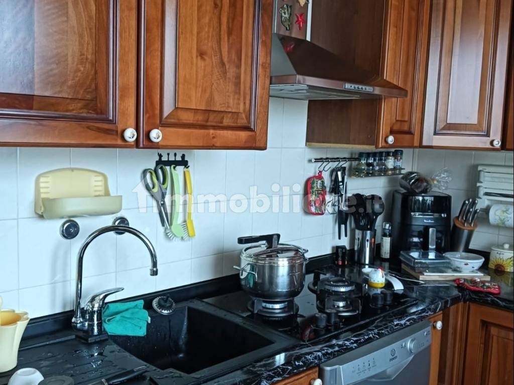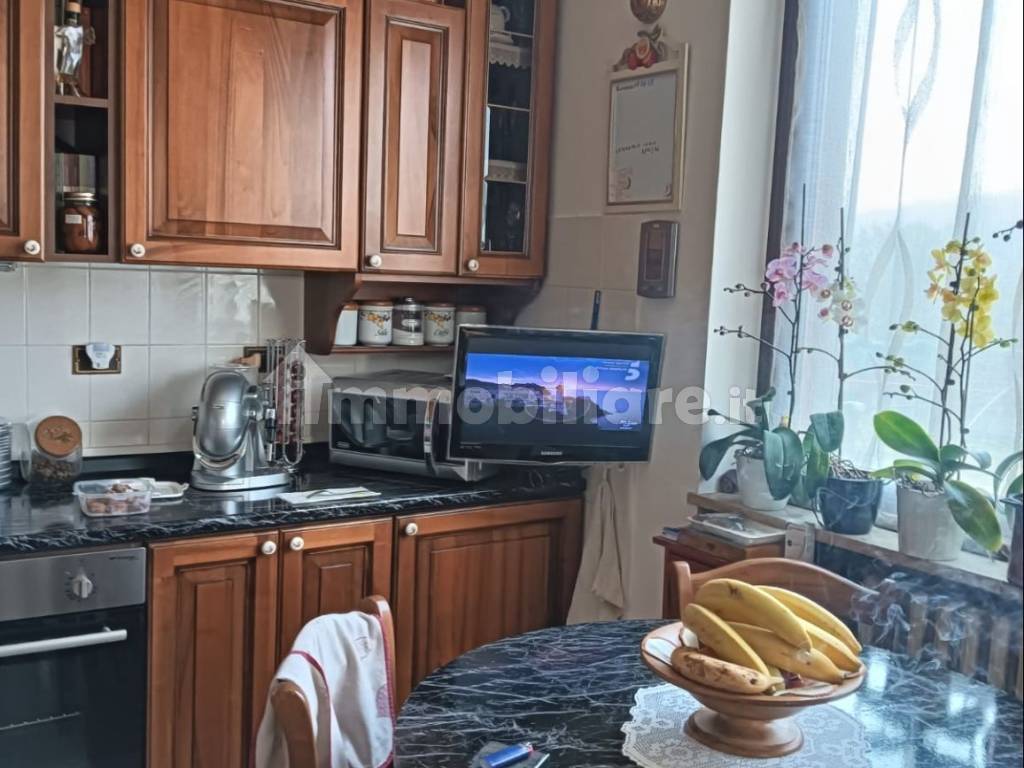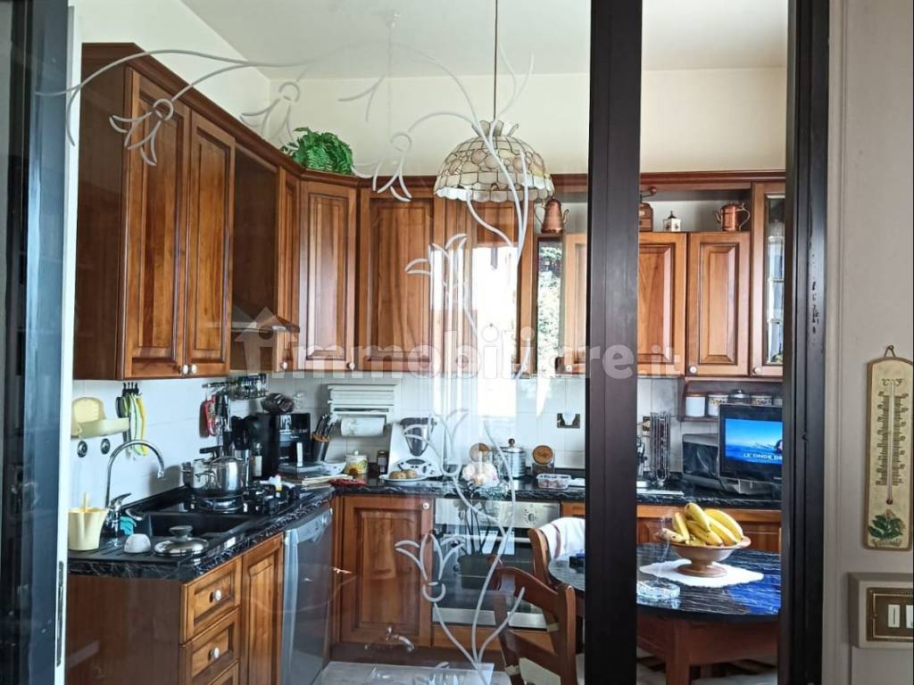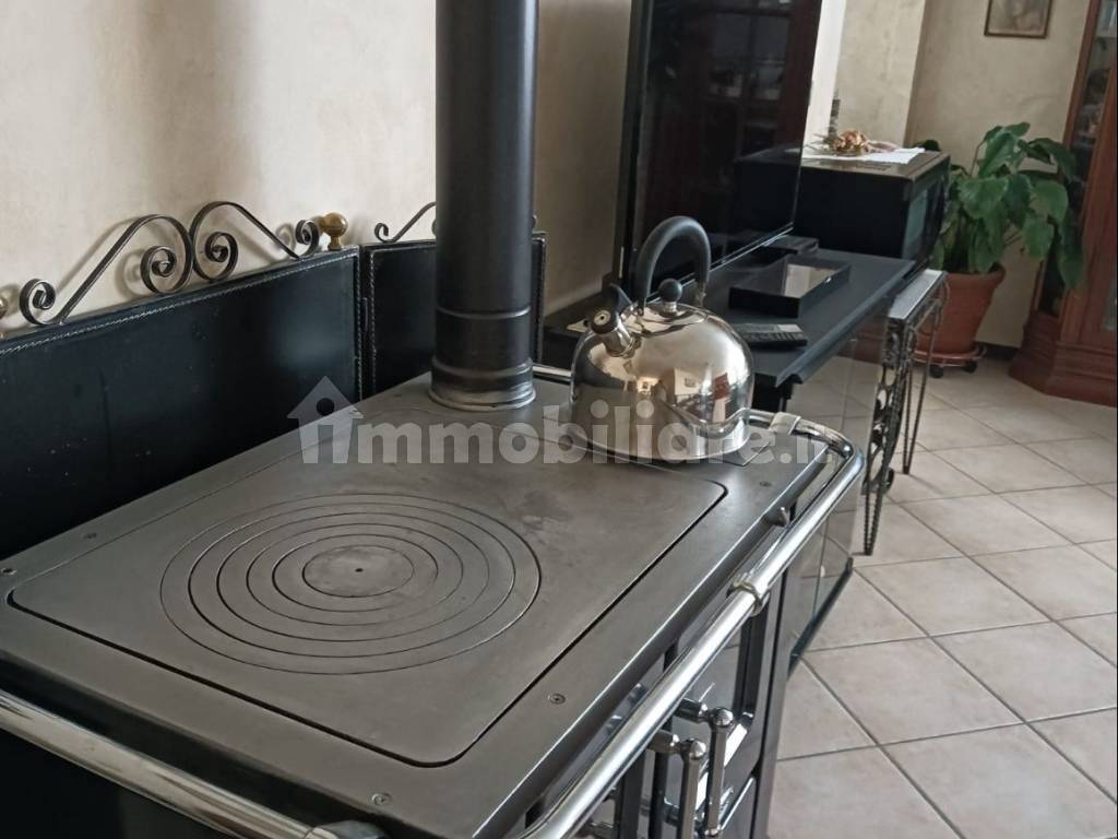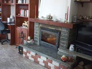 PIANO RIALZATO: Ingresso da piccola rampa di scale, luminosa cucina abitabile aperta su soggiorno e divisa da questo da porta in vetro scorrevole. Il soggiorno anch'esso molto luminoso grazie a una finestra e una porta finestra che porta sul balcone. In soggiorno è presente un condizionatore e il caminetto.
