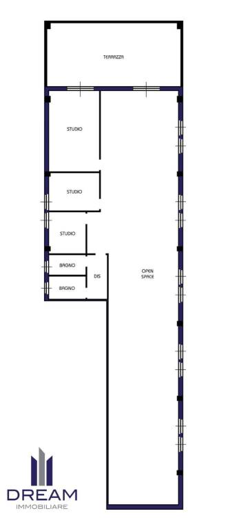 Questo spazio esclusivo è composto da un ampio locale openspace finestrato e luminoso, tre camere studio, due bagni e terrazza a livello.