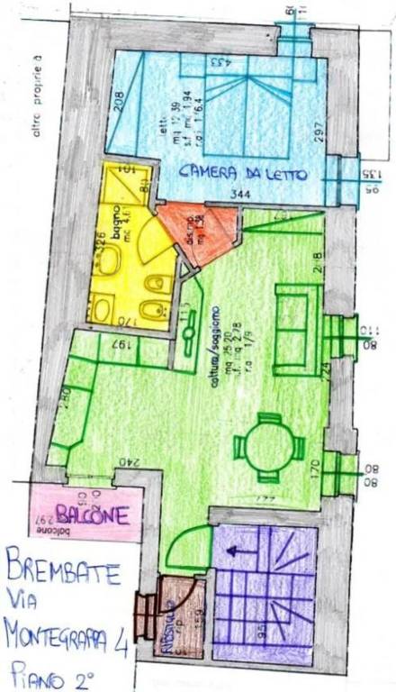 nuova costruzione in palazzina di tre unità, produzione acqua calda con pannello solare termico e caldaia a condensazione, riscaldamento a pavimento, scalda asciugamani / termo arredo nel bagno, molto luminoso, piano secondo e ultimo, mutuo 100%, anche affitto riscatto o permuta, agevolazioni prima casa, deduzione irpef 20%, termo autonomo, attacco internet, antenna satellitare, doppi vetri, porta d’accesso blindata, molteplici posti auto nelle vicinanze, lontano dal traffico. Vicinissimo Centro Commerciale il Continente, Ospedale Ponte San Pietro, fermata autobus sotto casa, veloce accesso tangenziale, stazione ferroviaria di Ponte San Pietro, negozi di vicinato. Mq. 57 Composto da soggiorno con cucina, camera, disimpegno, bagno con lucernario, balcone e ripostiglio. Certificato di abitabilità. Certificazione idraulica, elettrica. Certificazione energetica di progetto classe B.