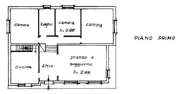 La zona giorno è situata al piano terra e si compone da ampio atrio d'ingresso, soggiorno-pranzo e cucina abitabile; tre camere (di cui due matrimoniali) e bagno compongono la zona notte al piano rialzato; al piano seminterrato gli spazi sono suddivisi in taverna, sala da pranzo, cantina, magazzino e w. c.
