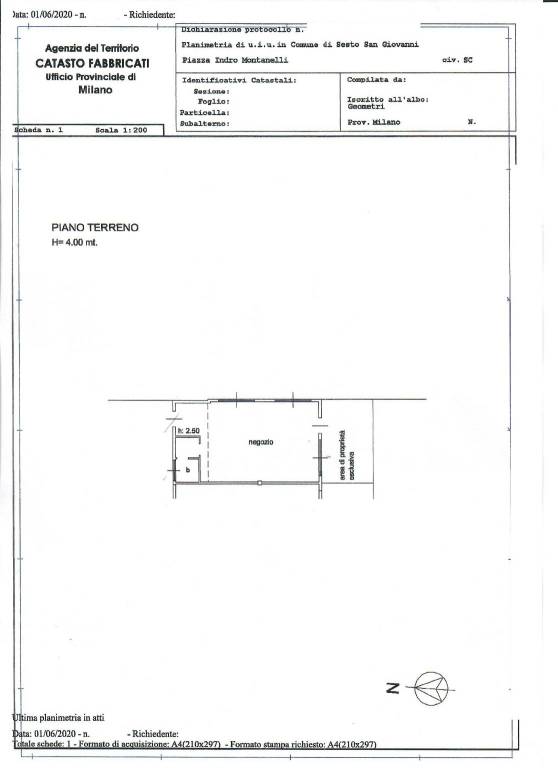 In Piazza Indro Montanelli n. 38 a Sesto San Giovanni (MI) vendiamo mura di negozio di MQ. 74.