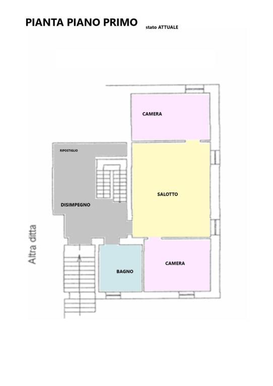Si sviluppa su due livelli, per un totale di con al piano terra l’ampia zona giorno e dal piano primo il reparto notte.