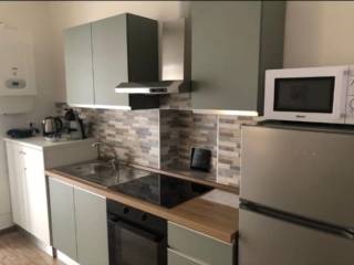 Al primo piano c'è invece una sala/cucina ben arredata con un divano letto, una smart tv, climatizzatore, cucina con frigo, forno, piano cottura,forno a microonde...