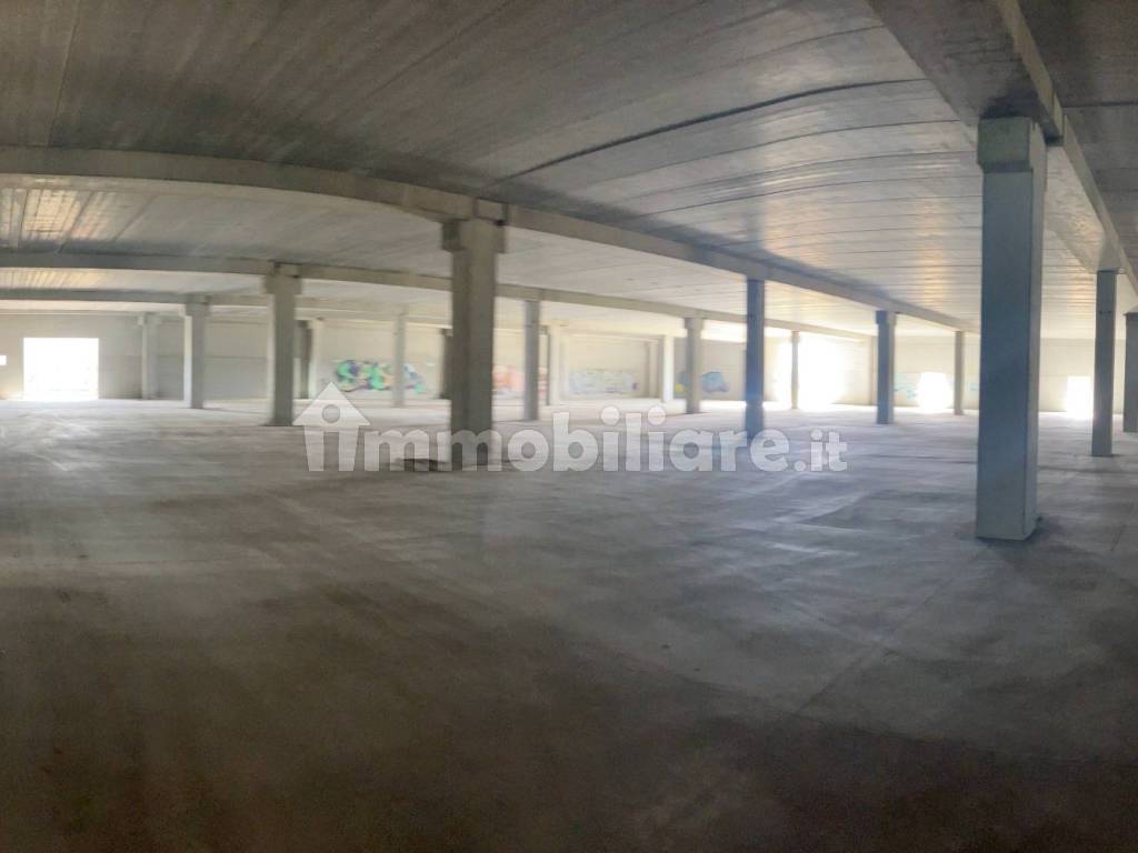 Porzione di capannone di grande superficie, disposto su due livelli per un totale di metri quadrati 8,000. La struttura in cemento armato prefabbricato si presenta in ottimo stato. I due piani di cui si compone sono collegati da una rampa carrabile oltre ad una scala esterna. Attualmente l'immobile si può definire da completare sia per la sua parte interna che per le sistemazioni esterne, lasciando spazio ad una personalizzazione dedicata alla specifica attività individuale. La sua collocazione, sia per la visibilità che per la rapidità di accesso alle vie principali di comunicazione lo rendono di estrema evidenza.