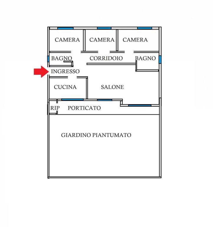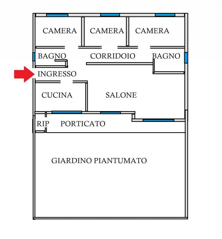 Parliamo ora dell'immobile che è situato al piano terra con un giardino spazioso, pianeggiante, già piantumato e con impianto di irrigazione ma, soprattutto, ben esposto a sud.