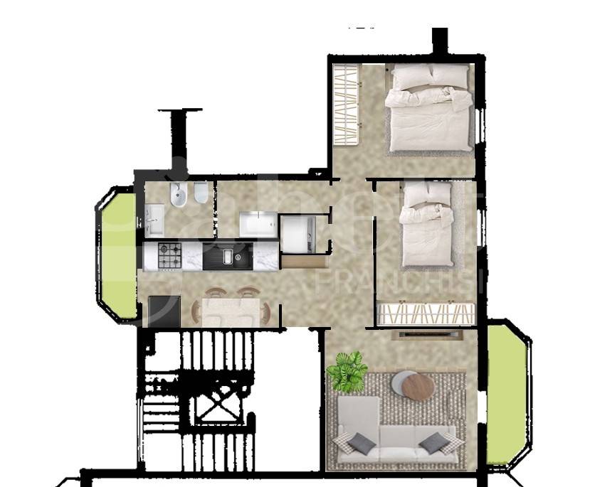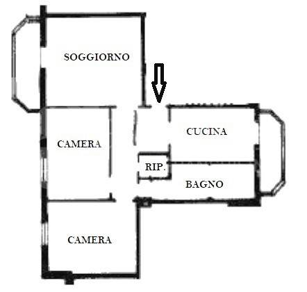 ingresso, cucina abitabile con balcone, ampio soggiorno con balcone, ripostiglio, camera matrimoniale, cameretta e bagno con doccia (possibilita' di realizzare il secondo bagno).