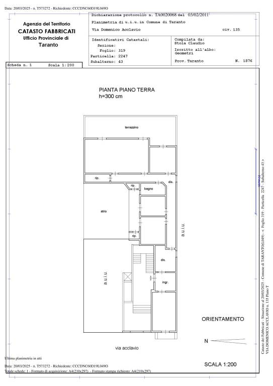 Questo si compone da un ingresso che da accesso da una parte alla prima stanza, molto ampia che affaccia su via Acclavio, dall'altra ad una altra stanza che si collega ad un corridoio che porta ad altre cinque stanze, tutte molto ampie e luminose, alcune dotate di affaccio su balcone interno dove troviamo anche un ripostiglio e altre che affacciano su un terrazzino, in conclusione abbiamo un ripostiglio interno ed un bagno dotato di antibagno.