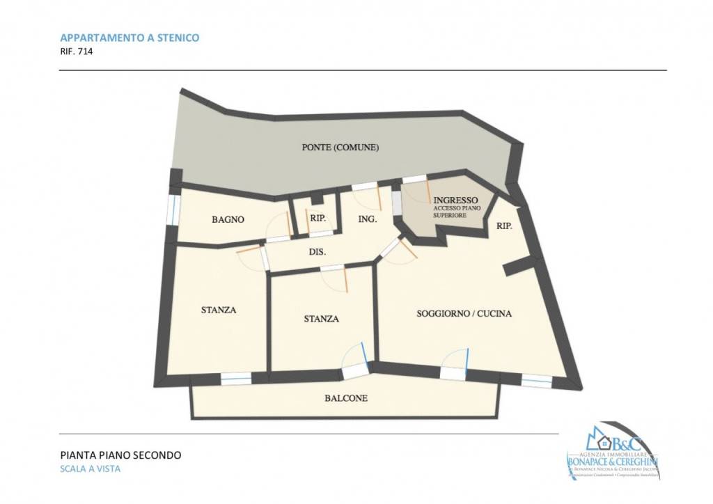 Nel Centro di Stenico, Comune soleggiato posto a metà strada tra i laghi di Molveno e di Garda, proponiamo in vendita un trilocale di recente costruzione di 65 mq. L'unità immobiliare si trova a secondo piano ma gode di un accesso indipendente a piano strada, e si affaccia verso est. E' composta da ingresso, disbrigo, zona giorno, due stanze, bagno finestrato, ripostiglio e balcone. Completa la proprietà una cantina a piano terra. Il riscaldamento è autonomo a pavimento, con caldaia a gas. Fin'ora l'immobile non è mai stato abitato in quanto viene utilizzato come pertinenza di altra abitazione, per questo motivo ad oggi l'arredo non è presente. Questo appartamento costituisce un'ottima soluzione sia come abitazione principale che turistica, oltre che come investimento da mettere a reddito.