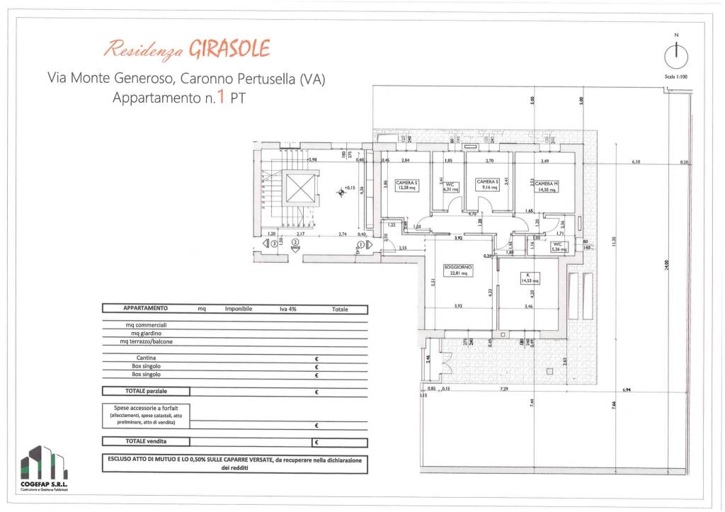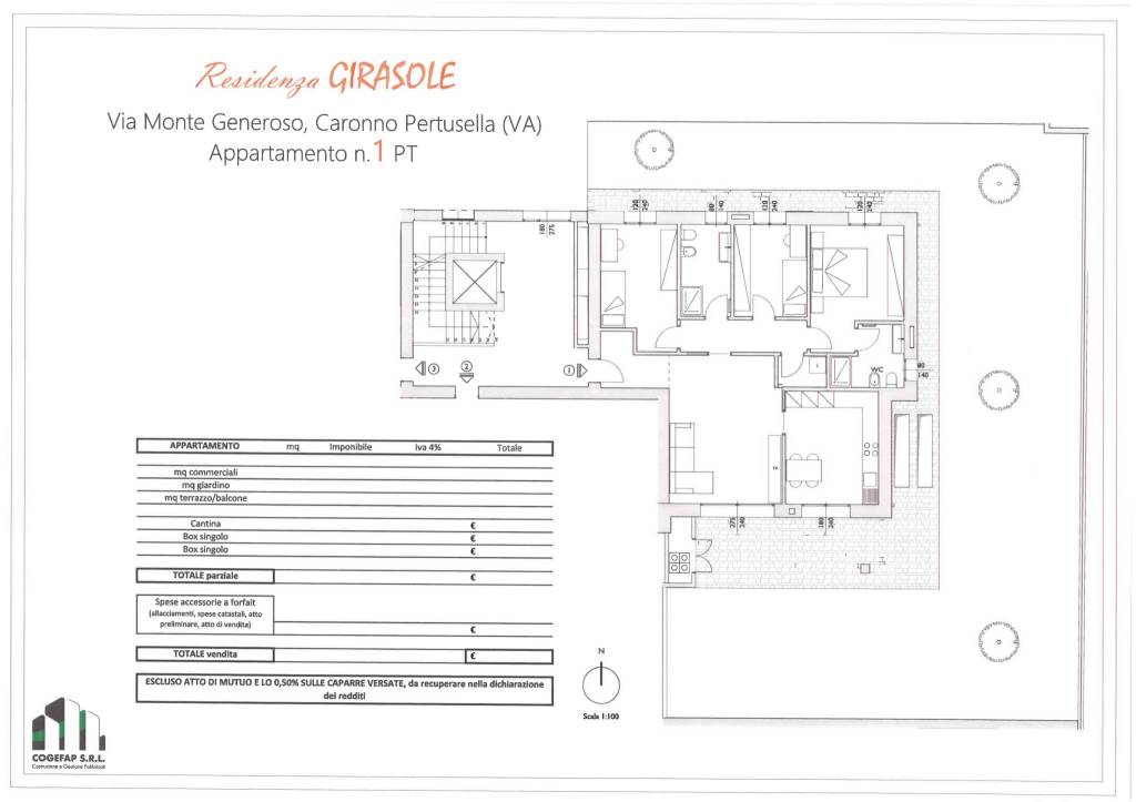 Nuova iniziativa immobiliare a Caronno Pertusella in Via Monte Generoso, a 500 metri dalla stazione FNM e dai principali servizi come banca, supermercato, posta, bar ecc. ecc.; piccola palazzina di sole 9 unità, disponibilità di appartamenti a piano terra con giardino, primo e secondo piano con terrazzi, ascensore a partire dal piano interrato box; tutte le parti comuni sono dotate di impianto luci a LED.