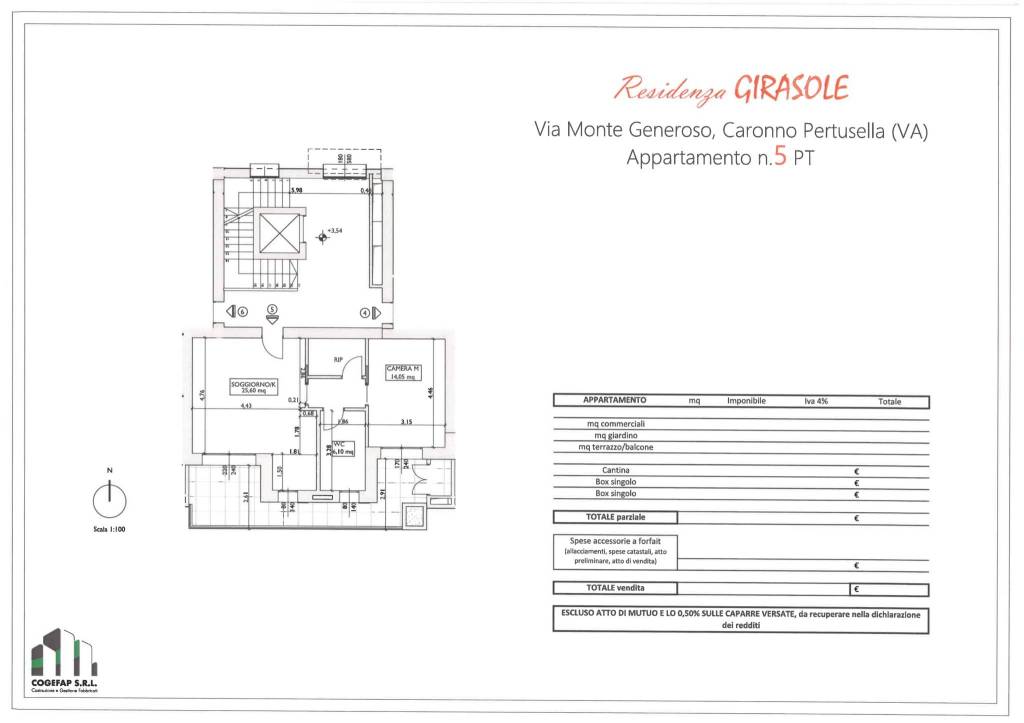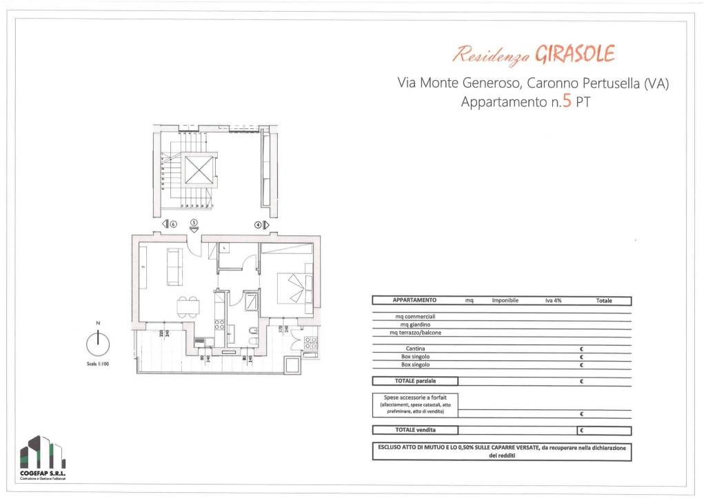 Nuova iniziativa immobiliare a Caronno Pertusella in via Monte Generoso, a 500 metri dalla stazione FNM e dai principali servizi come banca, supermercato, posta, bar ecc. ecc.; piccola palazzina di sole 9 unità, disponibilità di appartamenti a piano terra con giardino, primo e secondo piano con terrazzo, ascensore a partire dal piano interrato box; tutte le parti comuni sono dotate di impianto luci a LED.