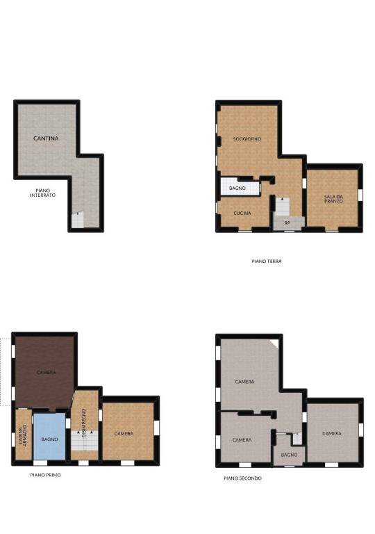 Il secondo piano completa la proprietà con tre ulteriori camere da letto, di diverse metrature, e un terzo bagno finestrato con doccia. Questi spazi risultano ideali per accogliere tutta la famiglia, ospiti o per creare zone studio/lavoro separate.