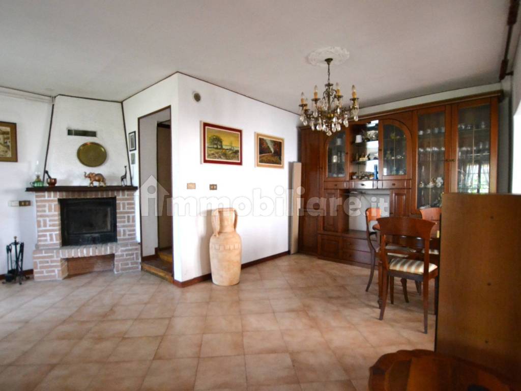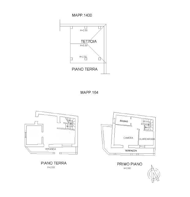 L'abitazione, accostata su un lato, è composta da piano terra con cucina abitabile ed ampio soggiorno con caminetto, mentre al primo piano sono presenti le due camere da letto di cui una con terrazzo ed il bagno.