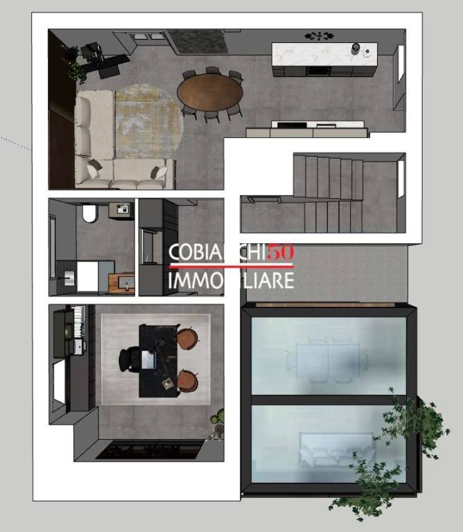La scala centrale nasconde il locale tecnico laterale con tutti gli impianti della proprietà tra cui : riscaldamento a pavimento a tre zone, impianto ibrido di riscaldamento Viessman con pompa di calore e caldaia a condensazione e puffer d'accumolo, Impianto fotovoltaico da 6.2 Kw ed impianto d'accumulo con batterie da 15 Kwh.