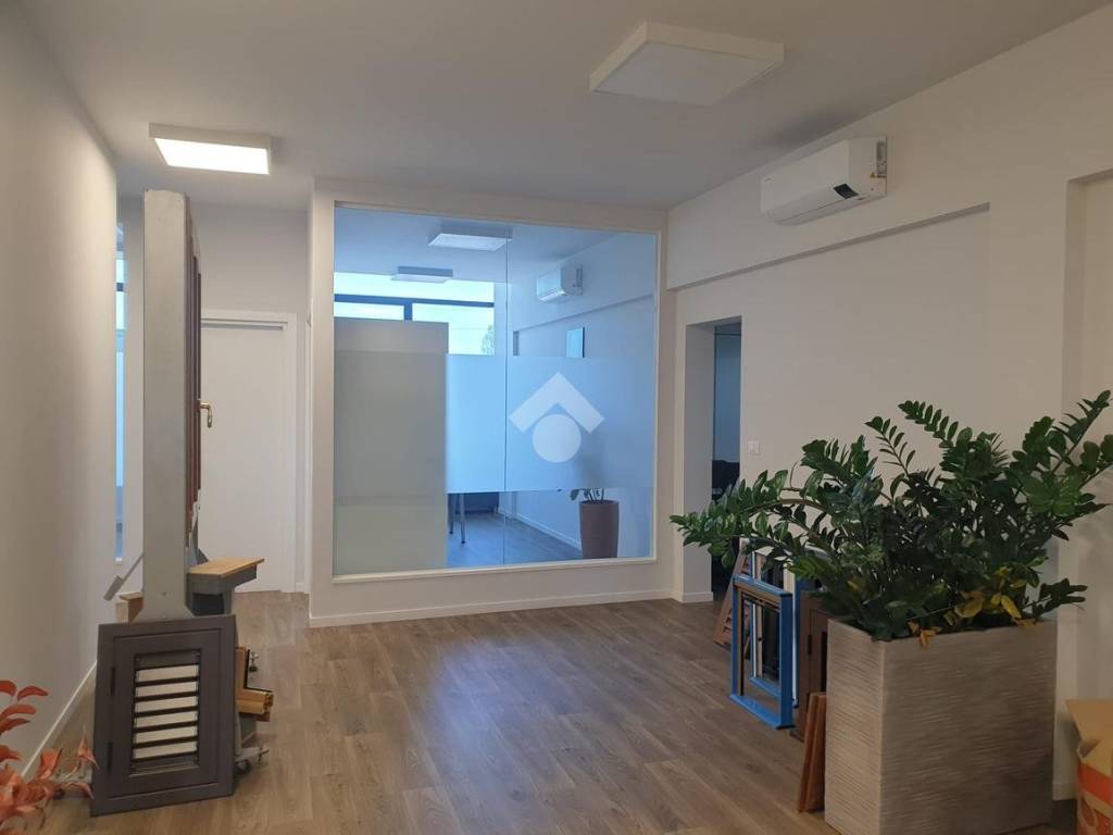 Lo spazio è diviso in 5 ambienti di cui tre ad uso ufficio una sala riunione ed una grande sala di aspetto, con bagno e antibagno.