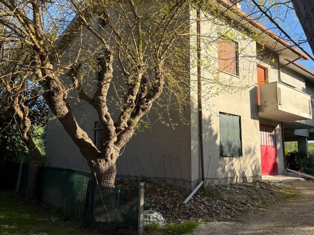 Casa bifamiliare composta da 2 appartamenti entrambi posti al primo piano, un' appartamento è di mq. 100 composto da: soggiorno, tinello - cucinotto, 2 camere matrimoniali, bagno e due balconi; l'altro appartamento è di mq. 100 composto da: soggiorno, tinello - cucinotto, 2 camere matrimoniali, bagno e tre balconi. Completano la proprietà un'ampia soffitta posta al secondo piano; la centrale termica, il garage ed un magazzino ad uso deposito sono posti al piano terra. Esternamente abbiamo un portico di mq. 80 ed un ex casa colonica ad uso magazzino di circa mq. 370. Corte esclusiva di 3.000 mq.