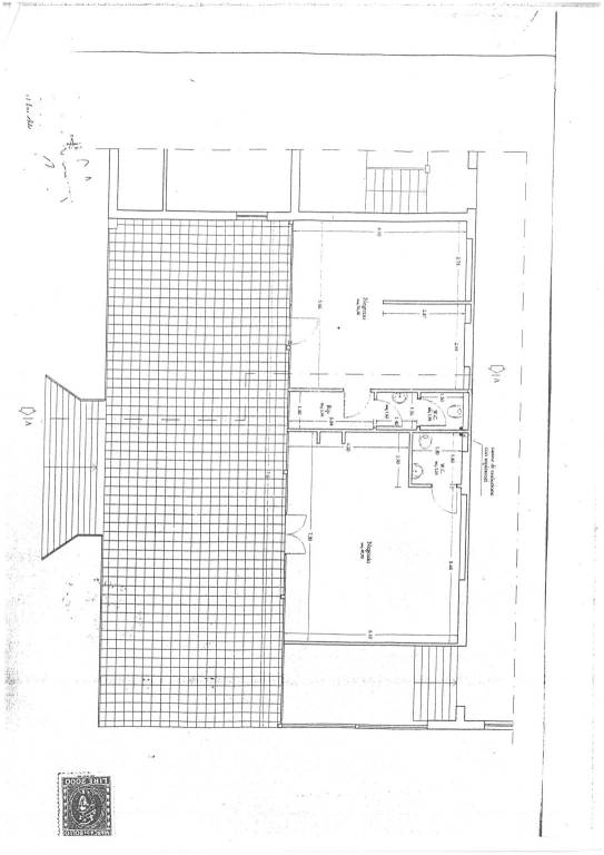 La divisione si compone di due ampi vani e due bagni, consente di sfruttare al meglio lo spazio, permettendo di creare un'area espositiva e un'area di servizio o magazzino o due unita lavorative separate.