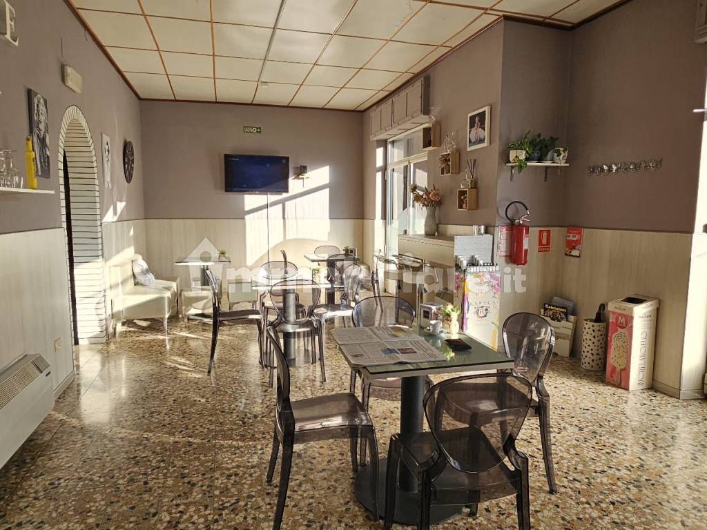 In zona centrale posto al piano rialzato cedesi attività bar, il locale è composto da una grande stanza con vetrine, bancone bar, con tavoli, altra stanza adibita a zona gioco, tre bagni ripostiglio, il locale è munito anche di cucina come da foto quindi si può ampliare l'attività come somministrazione di alimenti.