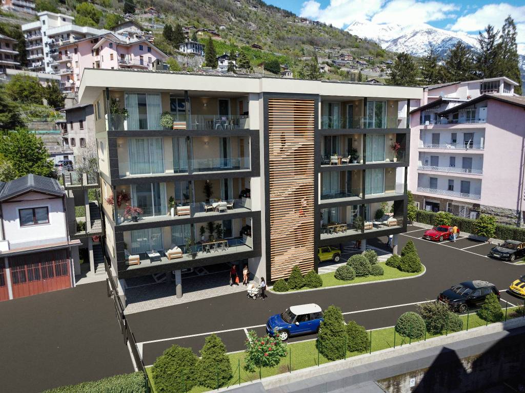 Tutti gli alloggi dispongono di ampio terrazzo verso sud, balcone lato nord, posto auto coperto e ampio locale deposito interrato.