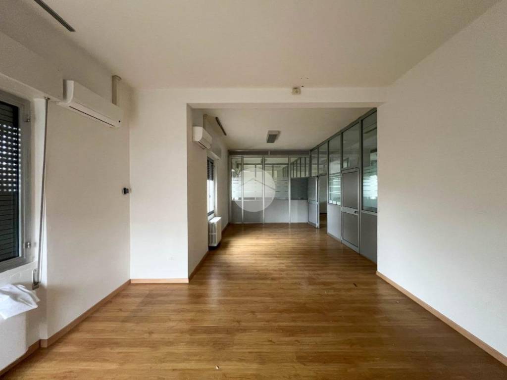 -Impianti e servizi: l’ufficio è dotato di impianto di riscaldamento e raffrescamento tramite split in ognuno degli ambienti. Inoltre, sono presenti 3 servizi igienici, di cui uno a piano terra e due al primo piano.