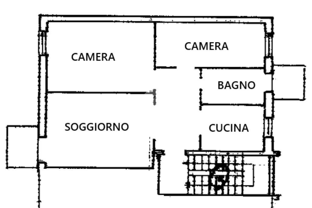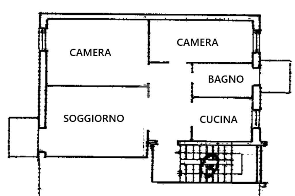 L’ingresso si apre su un pratico disimpegno, da cui si accede alla cucina separata, luminosa e funzionale. L’ampio soggiorno, servito da un balcone, rappresenta il cuore della zona giorno. La zona notte comprende una spaziosa camera matrimoniale, una seconda camera ideale come cameretta o studio, e un bagno finestrato con vasca, anch’esso servito da un secondo balcone.