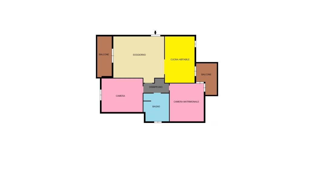 L’immobile è composto nella zona giorno dall’ingresso diretto nel soggiorno con balcone e dalla cucina abitabile anch’essa dotata di balcone completo di tenda da sole e zanzariera perimetrale.