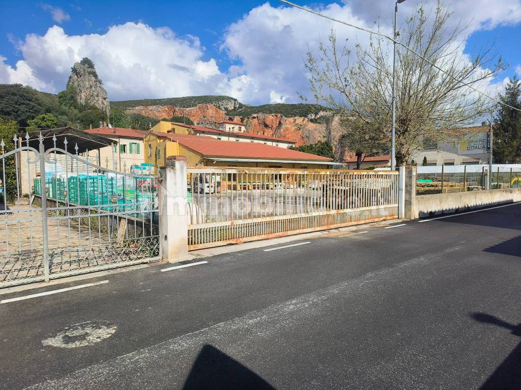 Un fabbricato sviluppato su un unico piano fuori terra di mq. 400 ca. più una tettoia di mq. 140 ca. composto da ampio locale adibito a vendita, archivio, due locali uso magazzino, due locali uso deposito e servizio igienico. Attualmente locato