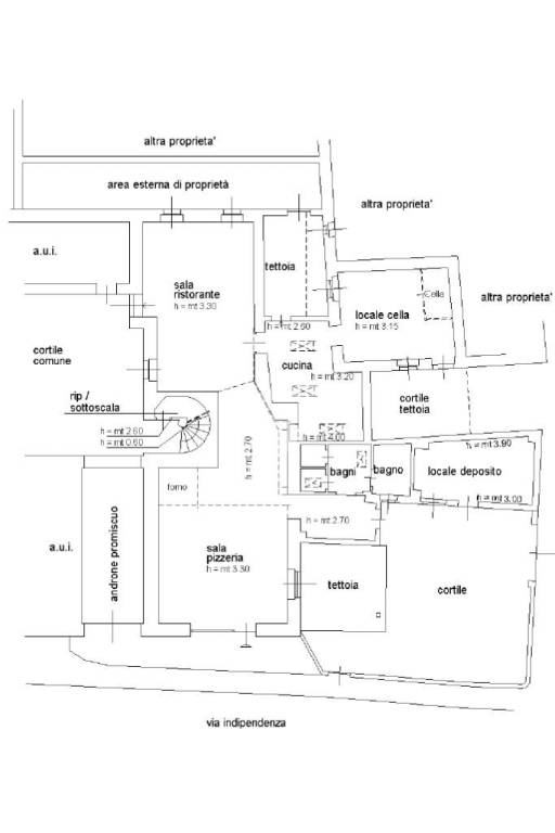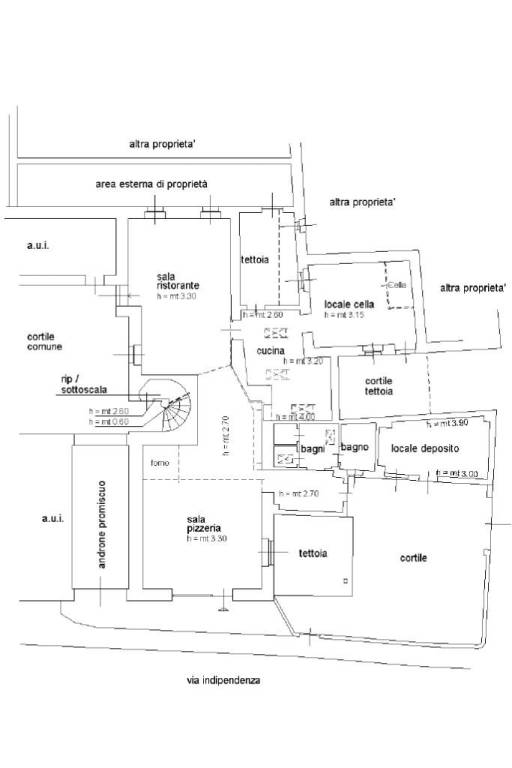 La soluzione si presenta divisa in varie zone: la sala ristorante, la sala pizzeria e la cucina con locale cella a cui si aggiungono due servizi igienici dotati anche di spogliatoio. L'ambiente si presenta luminoso grazie alla presenza di un'ampia vetrina fronte strada protetta da una saracinesca automatica. L'immobile presenta impianti elettrico e di illuminazione funzionanti, sistema di riscaldamento e di condizionamento e canna fumaria. Esternamente troviamo circa 80 metri quadrati di giardino recintato.