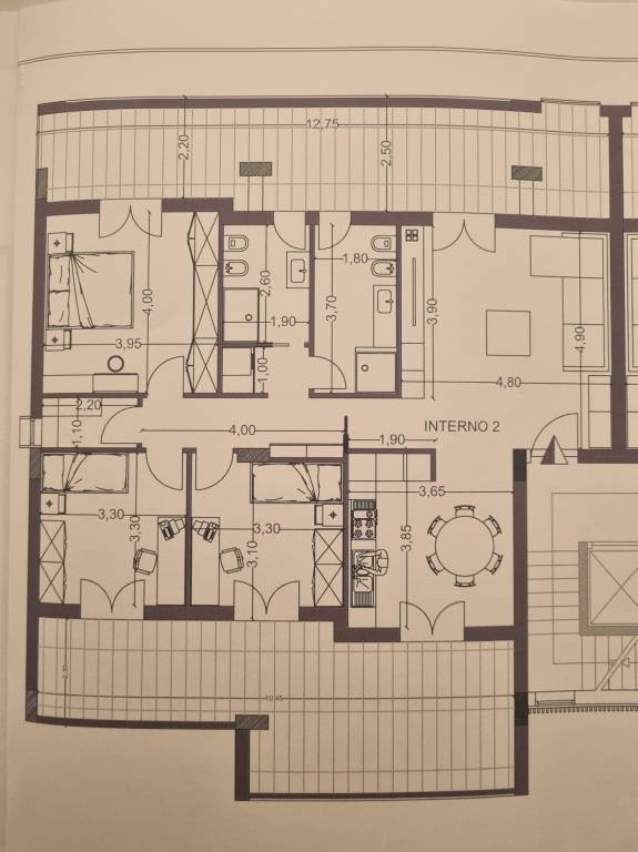 Gli appartamenti hanno una metratura di circa 105 mq composti da : salone, cucina abitabile, 3 camere da letto, 2 bagni , un ripostiglio, lavanderia, terrazzo ed ampia balconata, box auto doppio.